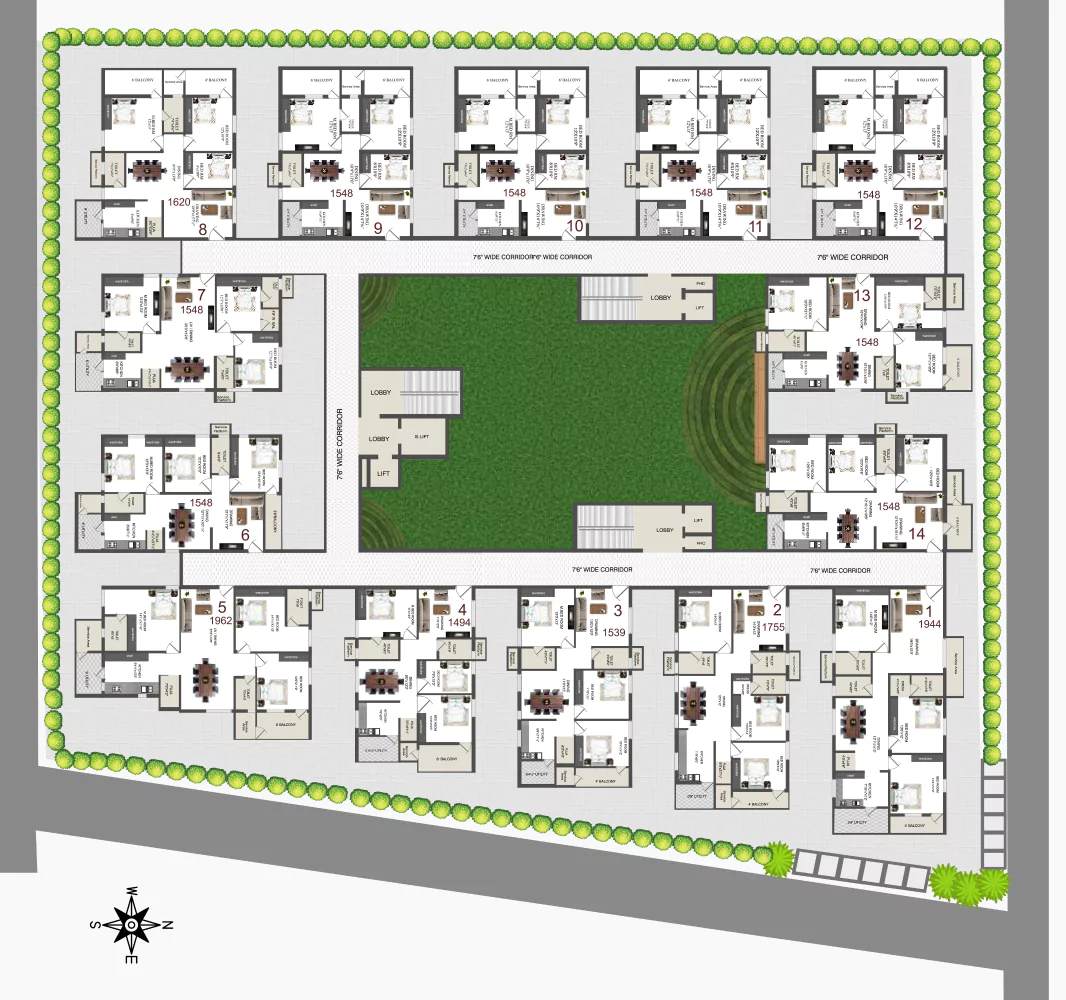 Concealed PVC pipes, multi stand copper wiring of Polycab / Finolex or equivalent make adequate points with modular switches of Legrand/Anchor/CPL with provision for lamps, Tube lights, Ceiling fans, T.V, A.c., Fridge, Geyser and Provision for Inverter with 3 phase meter Distribution Box with MCD’s will be provided for each flat. Provision for A/C’s in all bed rooms.