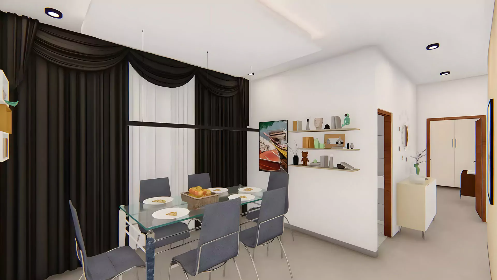 Internal Walls : Luppam finish in hall, dining and bed rooms with emulsion paint